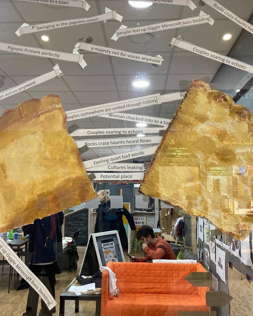 The final piece we created “The Anatomy of a Town” was a combination of found text, sculpture and an attempt to reimagine the town centre as something new. For me, it was also great to be working as an artist and workshop facilitator, a side of my practice which I continue to develop through collaborative projects and my work with Factory International (where I am keen to keep young people and local artists front and centre). Got a project? Feel like collaborating? Have an empty shop you think some artists could work in? Need a poet or artists to help articulate your project? Get in touch